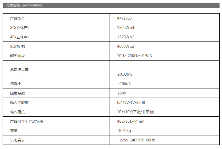 特色:采用先進(jìn)的ClassD功放模塊和*的SMPS電源模塊;具有極高的功率密度,僅在1U高度11\\\"深度的標(biāo)準(zhǔn)機(jī)箱空間內(nèi)就能提供前所未有的強(qiáng)大功率。